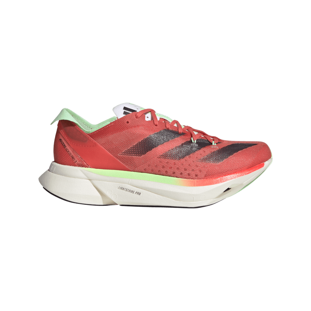 La Adizero Adios Pro 3 es nuestro mejor diseño para competir en carrera. Se ha creado con la colaboración de atletas profesionales con el objetivo de ayudar a quienes quieren batir récords. Esta zapatilla de running adidas está pensada para optimizar la eficiencia de tu zancada. Incorpora las varillas ENERGYRODS 2.0 que aportan ligereza y firmeza a la mediasuela para impulsar tu rendimiento. Cuenta con dos capas de nuestra espuma LIGHTSTRIKE PRO ultraligera y superresistente que te ayuda a mantener la energía durante toda la carrera. La suela con una fina capa de caucho textil proporciona un agarre excepcional en suelo seco y mojado. Celebramos una nueva victoria con el galardón a "la mejor zapatilla de running para velocidad" otorgado en 2024 por Women’s Health. DISEÑADA PARA BATIR NUEVOS RÉCORDS Zapatilla ADIZERO ADIOS PRO 3