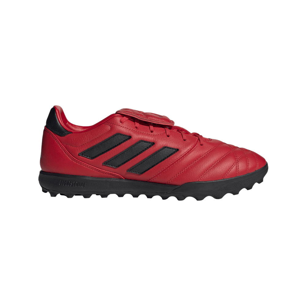 No se trata únicamente de ganar, sino de hacerlo con estilo. Esta zapatilla de fútbol rinde homenaje al pasado con una parte superior de piel que se adapta al pie como un guante. La suela de goma estriada te proporciona el máximo agarre y estabilidad en campos de moqueta de fibras cortas. Su diseño inspirado en la mítica Copa Mundial junto con la lengüeta plegable completan su imponente look. Este producto contiene al menos un 20% de materiales reciclados. Utilizando materiales reciclados, reducimos los residuos, nuestra dependencia de los recursos finitos y la huella que generan los productos que fabricamos. Ganar es el trato Zapatilla de fútbol Copa Gloro moqueta