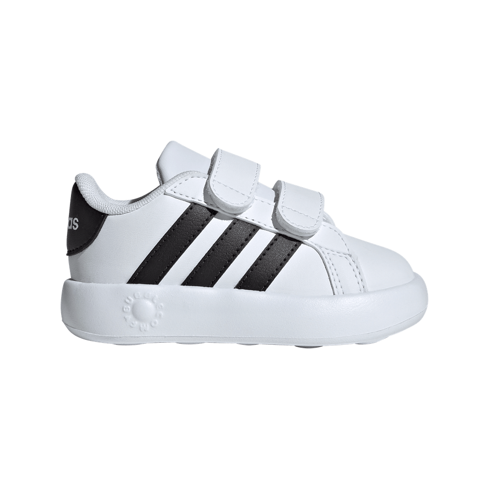 Si tu peque pudiera hablar, te diría cuánto le encanta esta zapatilla Grand Court de adidas. Las correas autoadherentes te permiten calzarle y descalzarle fácilmente, mientras que la suela de EVA con efecto burbuja le ofrece una pisada más cómoda. Ya sea para gatear o dar sus primeros pasos, sus divertidos colores y las clásicas 3 bandas le animarán a jugar durante todo el día. Este producto contiene al menos un 20% de materiales reciclados. Utilizando materiales reciclados, reducimos los residuos, nuestra dependencia de los recursos finitos y la huella que generan los productos que fabricamos. Llena de confort su día a día Zapatilla Grand Court 2.0 (Bebé)