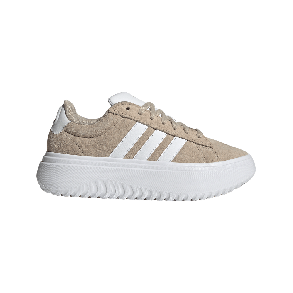 Siente la energía de un partido de tenis fluir por tus pies cada vez que te pongas esta zapatillas adidas. Aunque su diseño evoca la estética deportiva de los 70, no tienes que ser una estrella de la raqueta para lucirlo. Incorpora una mediasuela con plataforma Cloudfoam que eleva la elegante parte superior sintética y te ofrece una pisada que te hará sentir como si estuvieras caminando sobra las nubes. El estilo del tenis salta a las calles Zapatilla Grand Court Platform