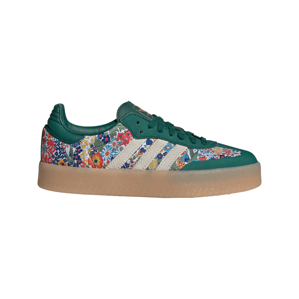 Diseñada en colaboración con los grandes almacenes de lujo Liberty London, esta zapatilla Sambae de adidas Originals combina una comodidad exquisita con colores vibrantes. El empeine de piel y ante cobra vida a través de un exuberante estampado floral que aporta un toque artístico a esta silueta legendaria. Esta versión vanguardista de la mítica Samba presenta una suela de goma color caramelo de gran agarre con los laterales más altos y semitraslúcidos. Las 3 bandas con pespuntes en zigzag y el logotipo de Samba ponen el broche final. Combínala con tus looks informales para lucir una explosión de color y creatividad a cada paso. Reflorece tu estilo Zapatilla Sambae x Liberty London