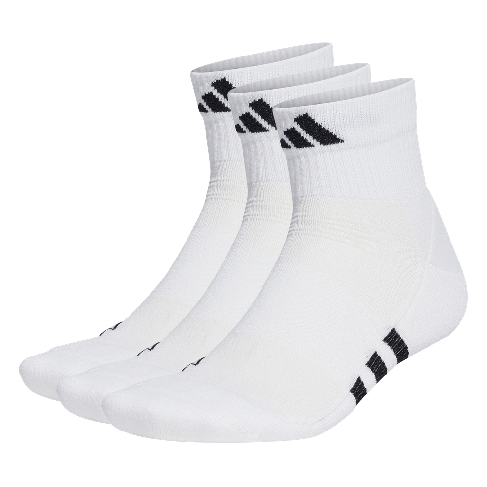 Hay detalles que te ayudan a darlo todo en cada entrenamiento. Ponte estos calcetines de media caña y rinde al máximo durante toda la sesión. Las inserciones de malla favorecen el flujo de aire y la tecnología transpirable AEROREADY mantiene los pies cómodos y secos. Las zonas flexibles y el refuerzo en el arco plantar te permiten moverte con total libertad. Cada paquete incluye tres pares. Este producto contiene al menos un 50% de materiales reciclados y renovables. Confort, rendimiento y versatilidad Calcetines Performance Cushioned Mid-Cut