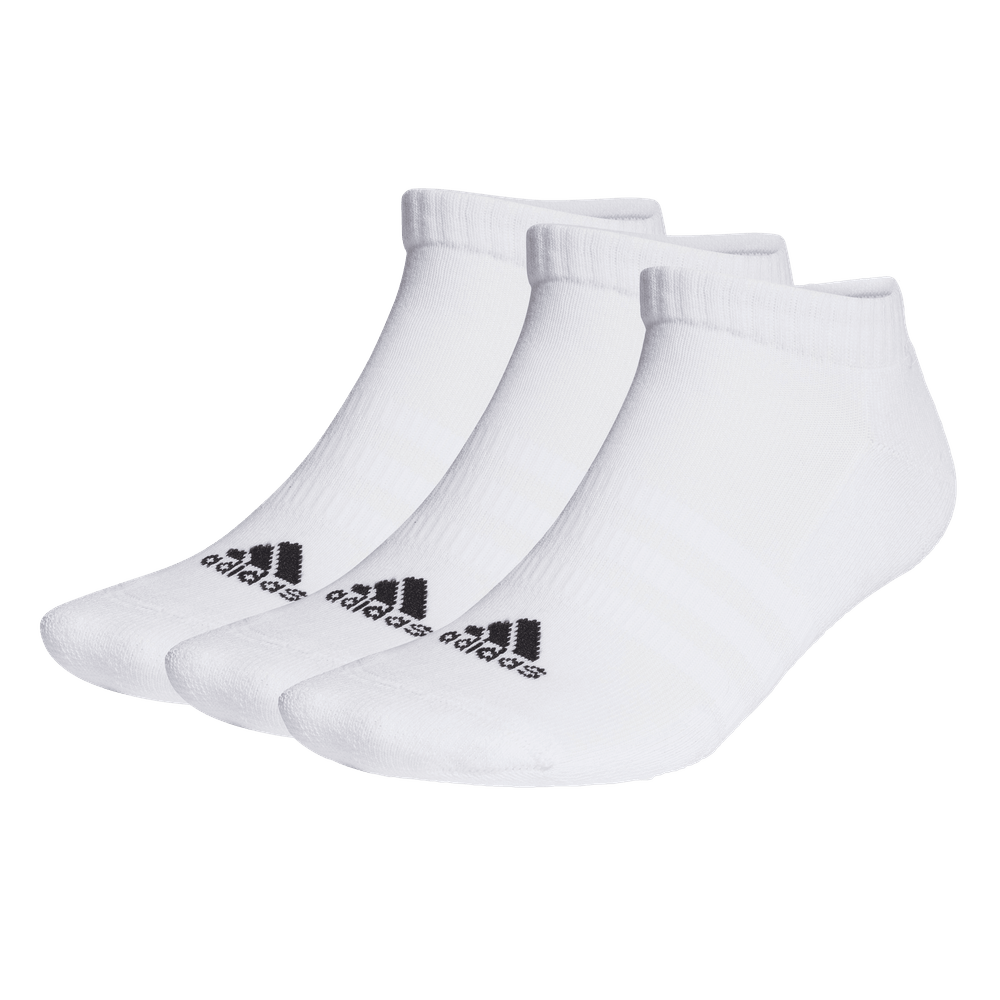 Estos calcetines cortos de adidas se mantienen en su sitio en todo momento, ya sea en una caminata ligera o un entrenamiento intenso. Se han confeccionado en un tejido suave, transpirable y ligeramente elástico con una mezcla de algodón, poliéster y nailon. Los paneles acolchados en el talón y la puntera se combinan con un refuerzo en el arco plantar para ofrecerte una gran comodidad incluso en actividades de alto impacto. El logotipo de adidas y las 3 bandas del mismo tono conservan intacta su esencia deportiva. Este producto contiene al menos un 70% de materiales reciclados y renovables. Confort y estilo para tu día a día Calcetines tobilleros Cushioned