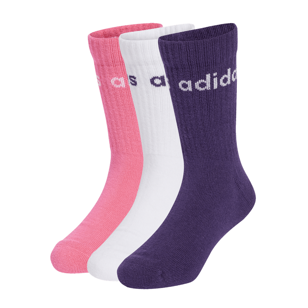 Mantén los pies de los más pequeños cómodos todo el día con estos calcetines de adidas para niños. Son un básico para el día a día, el colegio, los juegos, las aventuras en el parque y mucho más. El logotipo adidas tejido añade un estilo icónico Un pack de tres calcetines de largo medio. Pack de 3 pares de calcetines Linear Kids Crew
