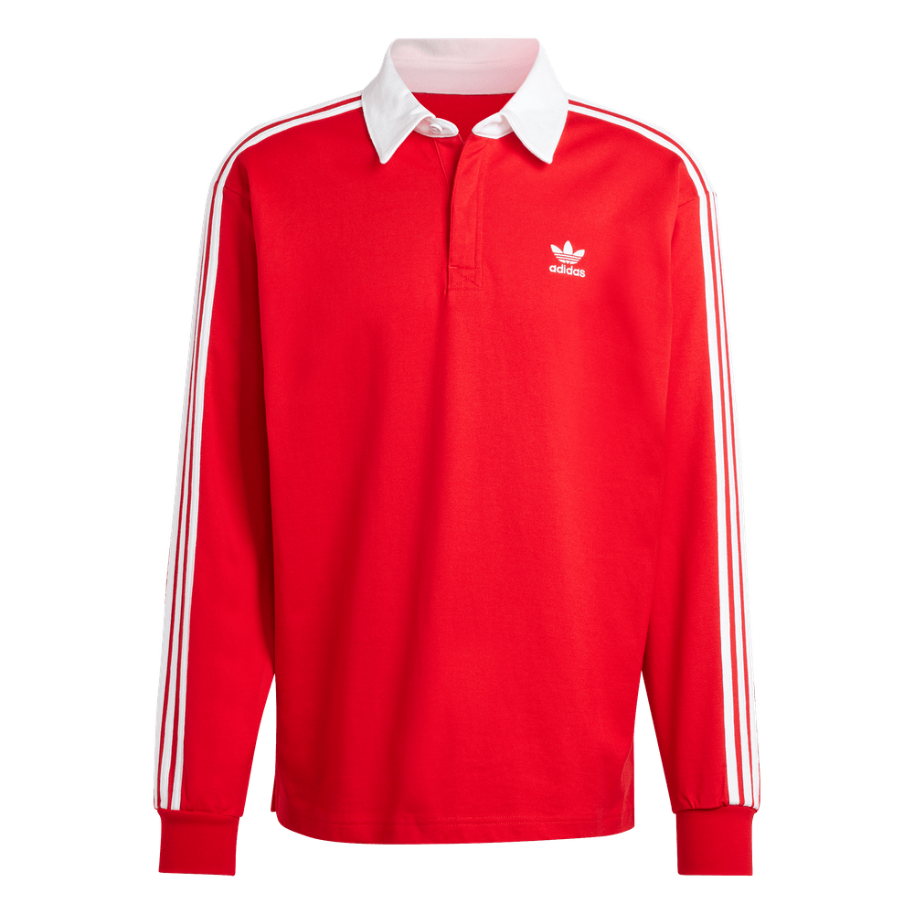 Presume de estilo retro con este polo de rugby adidas. Presenta un diseño clásico con cuello de polo, puños de canalé y detalles actuales, y se ha confeccionado en un cómodo tejido de punto. Las 3 bandas y el logotipo del trébol en contraste demuestran tu pasión por el deporte. Ideal para destacar en tu día a día. Vive el momento a todo color Polo Adicolor Rugby